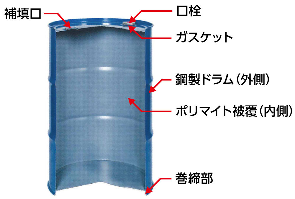 一般缶と同じサイズ(120ℓ、100ℓ、60ℓ、50ℓ、20ℓ)の各種中小ポリマイト缶が製造可能です。